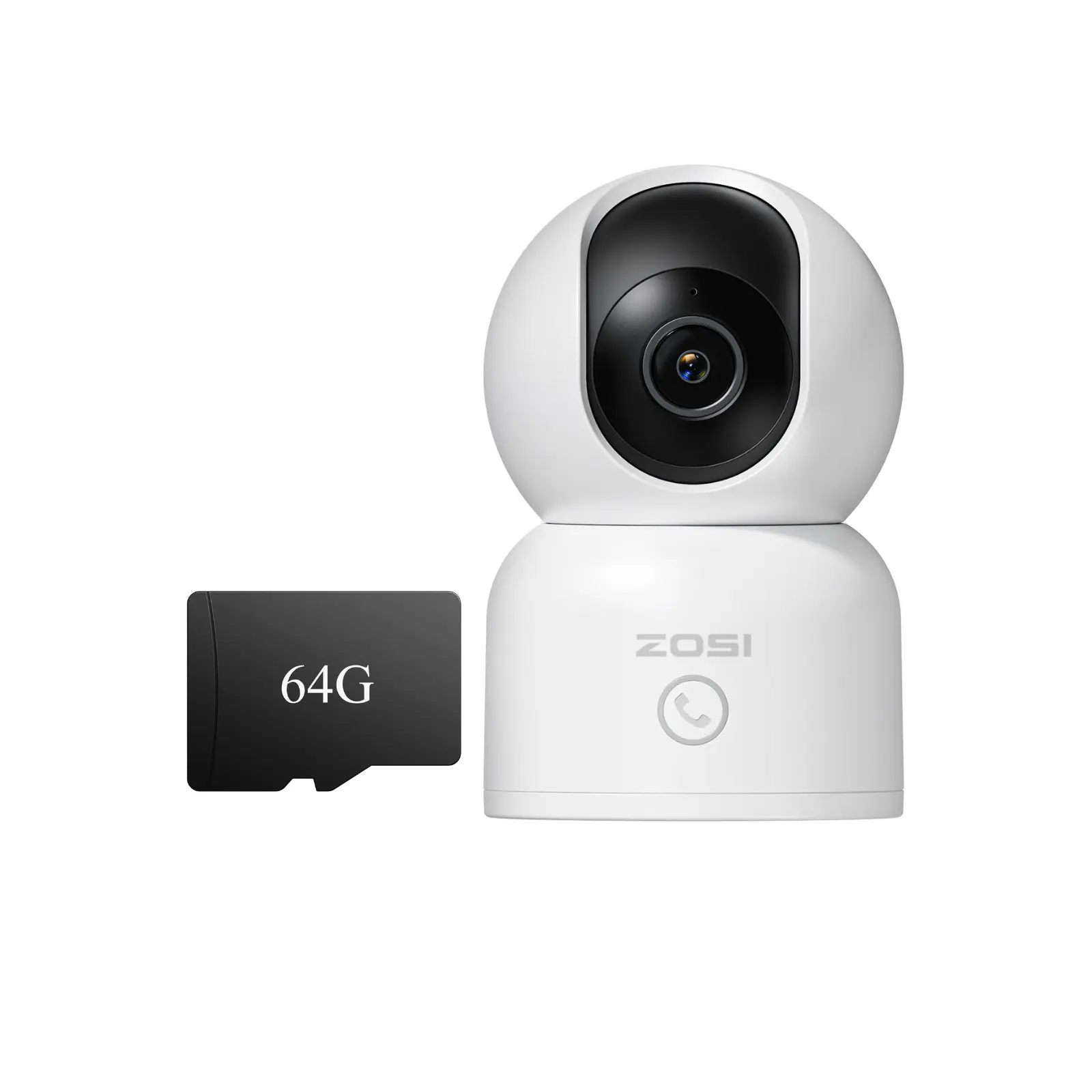 The one-touch call button allows easy communication. Real-time voice intercom keeps you connected anytime. Share camera access with family effortlessly. Save videos locally with the 64GB Memory card or connect to ZOSI NVR for extended storage.