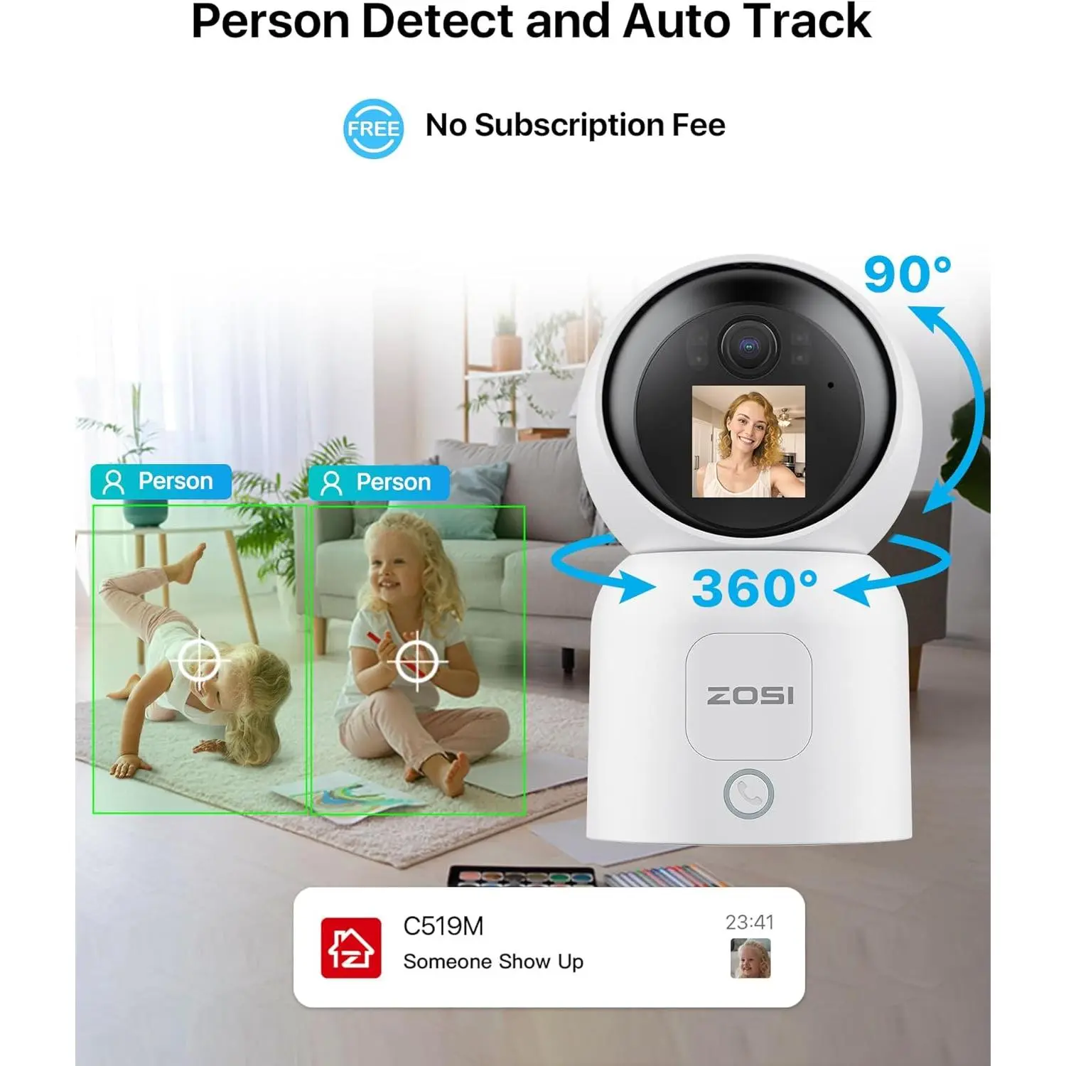 ·【Smart Detection & Human Tracking】With its built-in AI person detection algorithm, this ZOSI smart camera can accurately detect motion or the presence of human/furry friends and promptly send alert app notifications to your phone. It allows you to keep an eye on any movement with ease while ensuring that human subjects in the monitored area are tracked intelligently, keeping them in focus regardless of their movements.