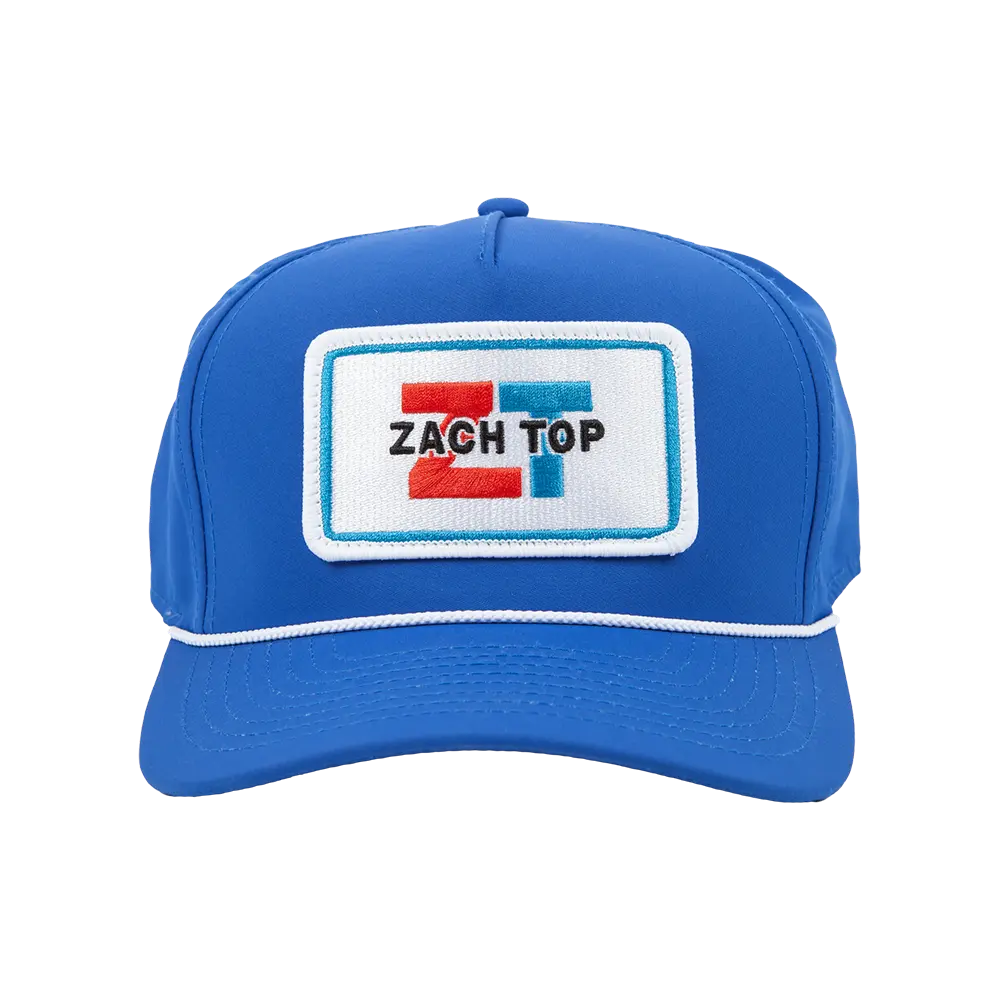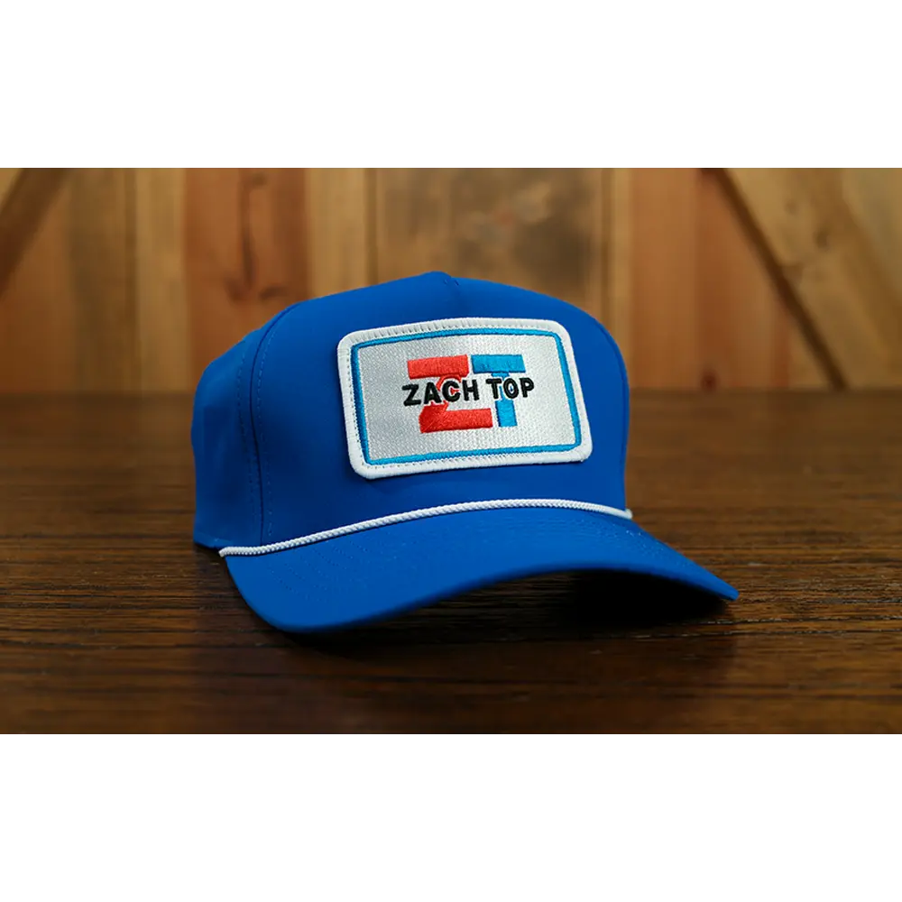 Royal blue structured hat with red and blue ZT patch on the front.
