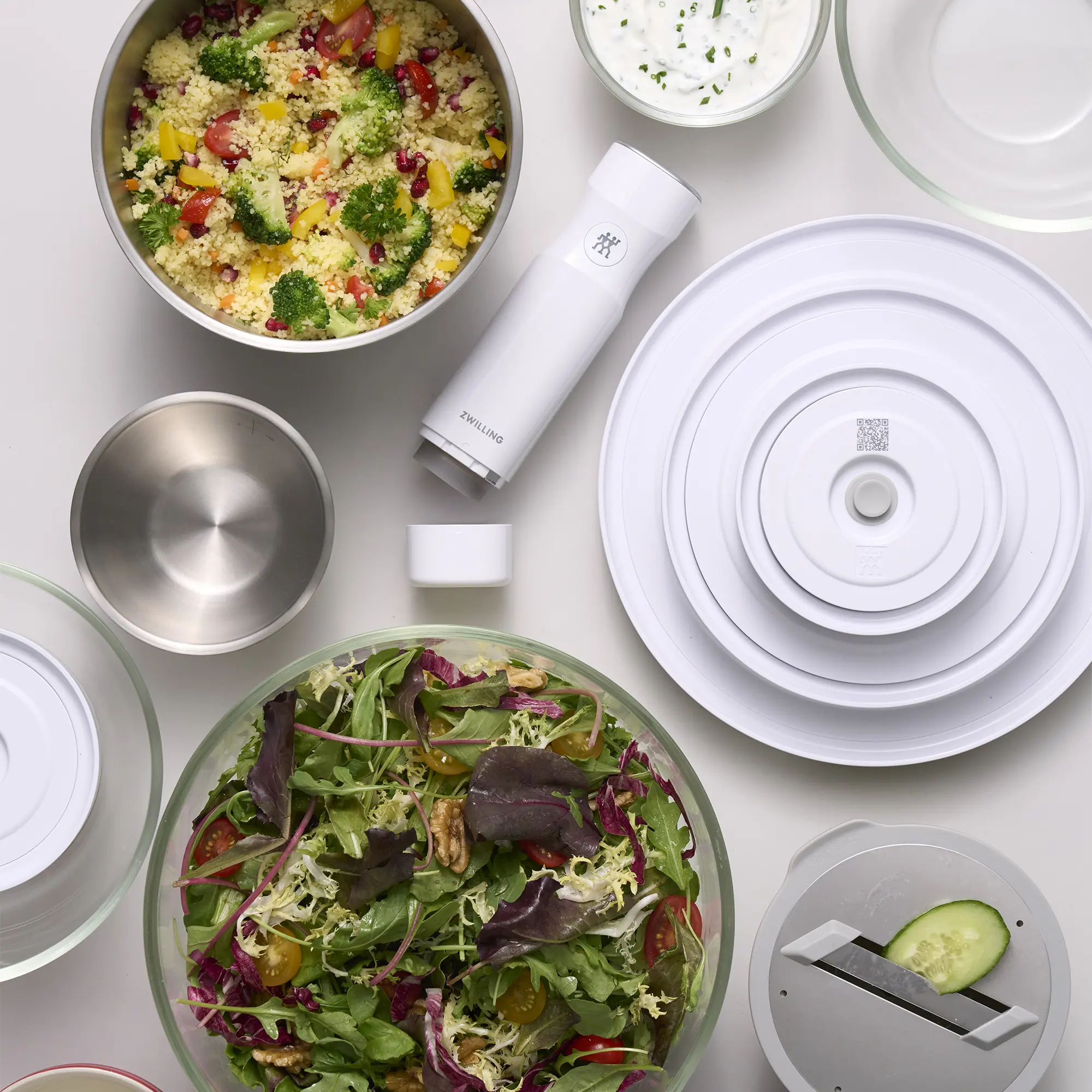 Power through prep with the ZWILLING FRESH & SAVE Bowls—the comprehensive vacuum system that’s thoughtfully designed with a suite of accessories that make prepping, baking, and serving more efficient. Featuring our revolutionary vacuum technology, the airtight lids lock in freshness and let you bring food on the go with less mess.