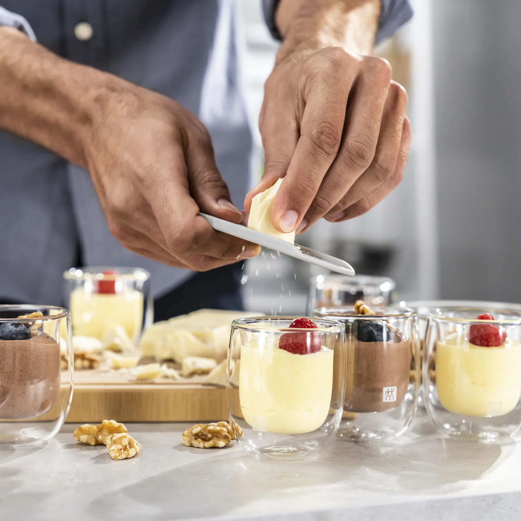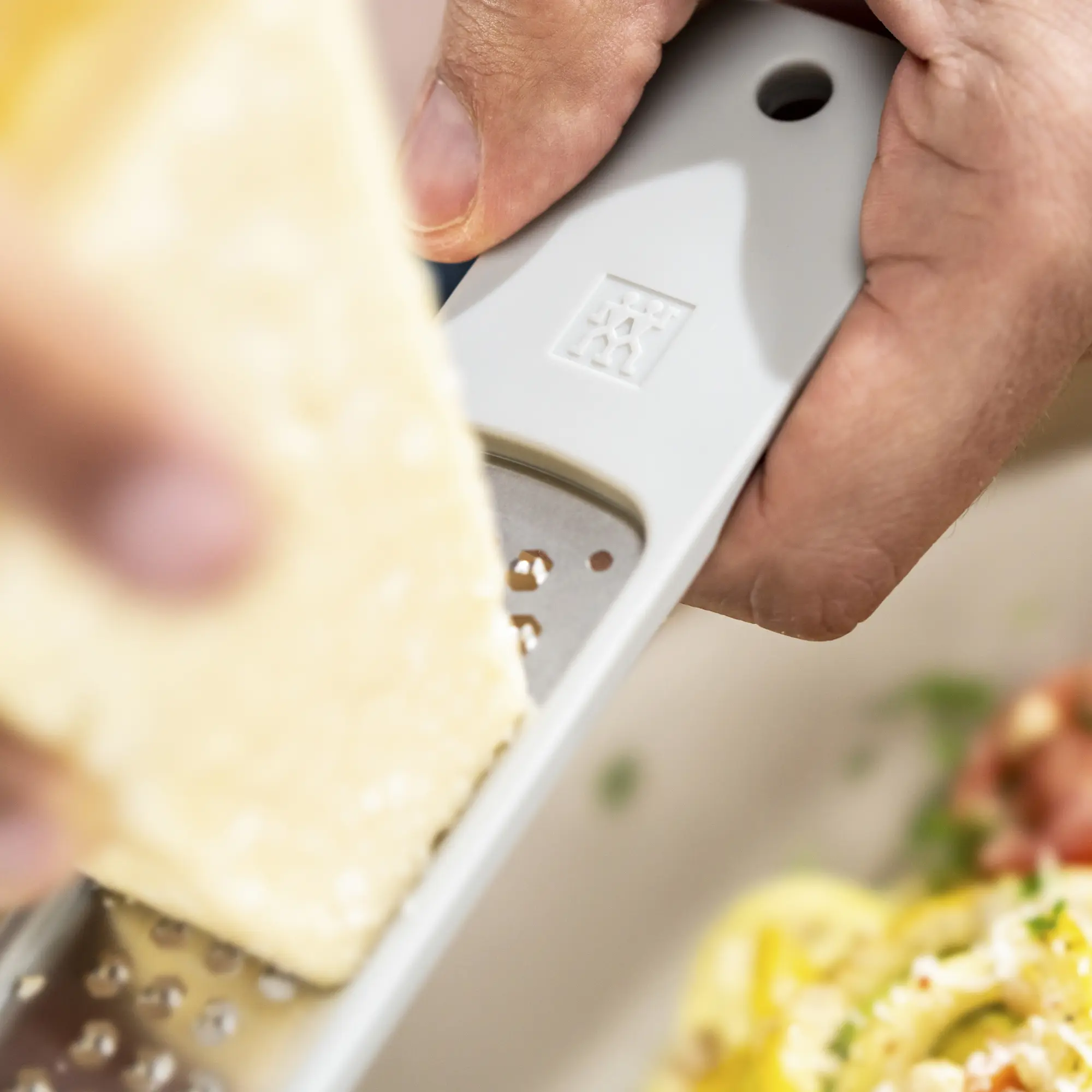 Designed and engineered in Germany, Zwilling Z-Cut offers a unique grating and cutting technology to help you get your prep work done effortlessly. Thanks to the integrated, sharp 2-way cutting functionality combined with the unique Z-cut cutting blade teeth design, you get better grating results, faster. Z-cut was engineered using the long tradition of cutting expertise that only ZWILLING can offer. From fine and medium grating, to coarse grating, and slicing, you can enjoy more output, with less effort. Each tool boasts a sleek minimalist design that offers the utmost in comfort and ergonomics. And the slip-proof design makes Z-Cut safe and easy to use. All Z-Cut components are dishwasher safe.