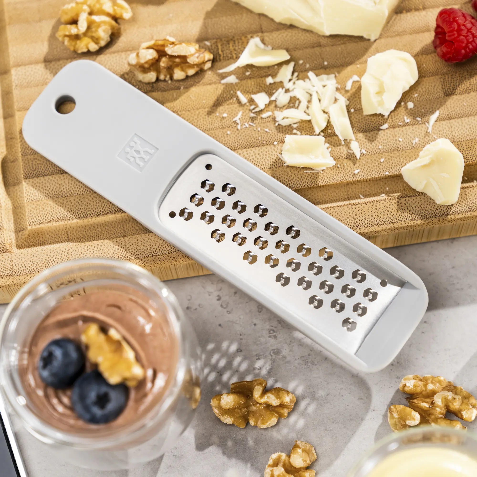Ideal for smaller scale jobs, the lightweight and compact mini grater makes quick work of fine grating. Grate chocolate or zest citrus with ease. Featuring an ample grating surface and a comfortable handle, the mini grater lets you grate directly over your dishes.