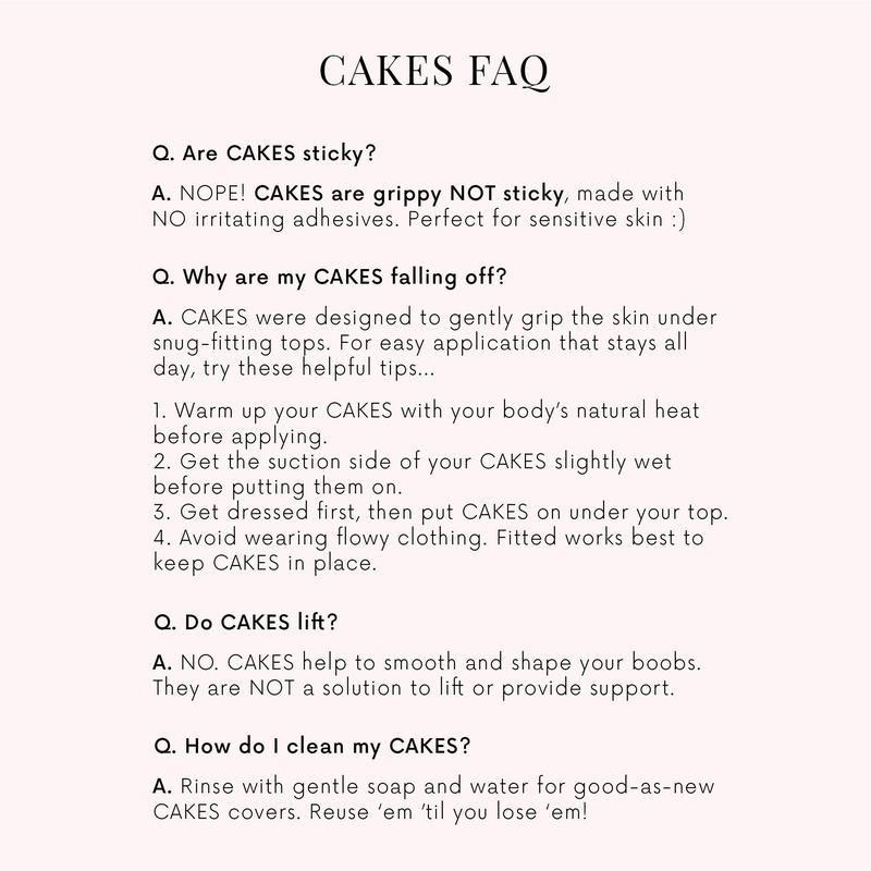 Cakes are light, comfortable and soft, you hardly know you’re wearing them! I ordered honey size medium and they fit very well. I’m a size D, although I think I could’ve sized up to the larger size but I think either way they’re pretty good overall and they stay in securely with warm body temp skin!